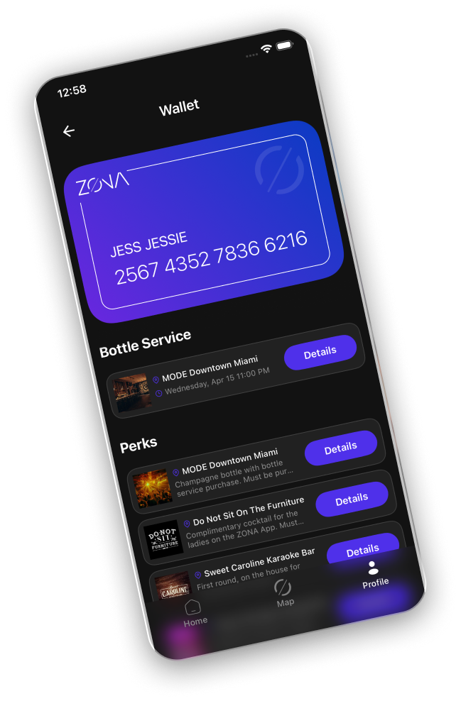 Store your bookings, unlock perks, and access exclusive offers all in one place. From free drinks to VIP upgrades, ZØNA rewards you for going out.